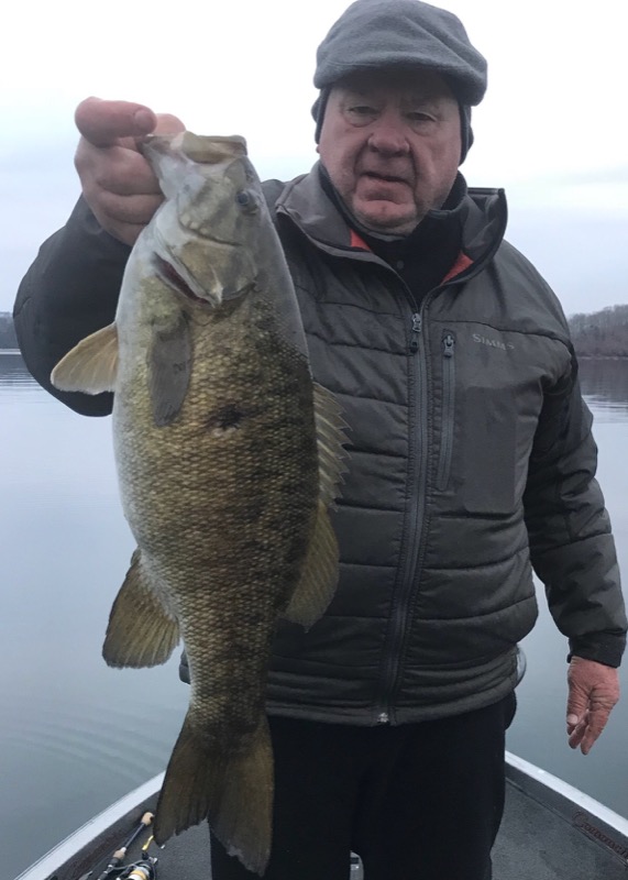HOG FROM THE HOLLER-Fishing has been excellent this winter on Dale Hollow with multiple trophies being caught, including this 22.5” 6.3-pound smallmouth landed by Terry Everett of South Pittsburg, TN. (photo submitted)