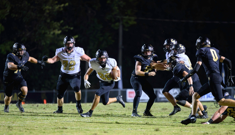The win was preserved by a crucial pass breakup from freshman Nemo Hamilton, a huge sack by junior Cage Ashley, and a jarring hit to dislodge what would have been a fourth-down completion delivered by senior Cole Eads.