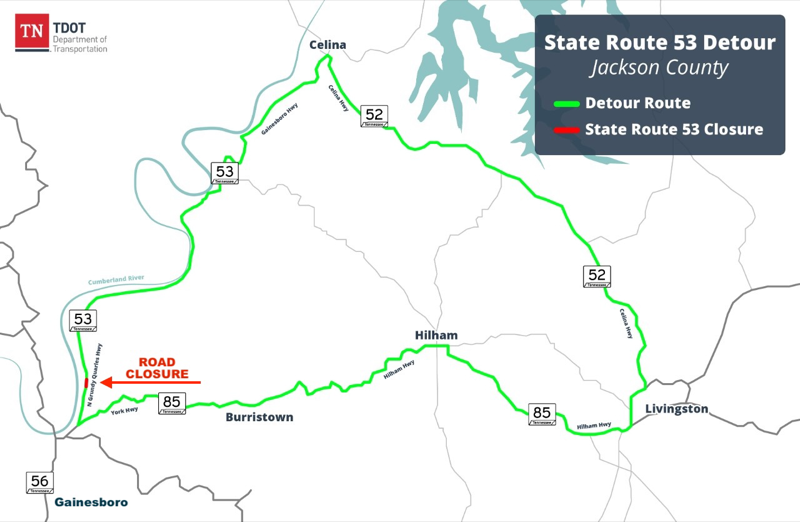 “As part of the upcoming culvert replacement project on State Route 53 in Jackson County, TDOT will temporarily close a section of SR 53 near Hurricane Branch Lane to allow crews to safely complete this critical work,” a news release from the department said last week. “The closure is scheduled to begin on Wednesday, March 4, 2026, and is expected to remain in place for approximately 50 days, weather permitting.