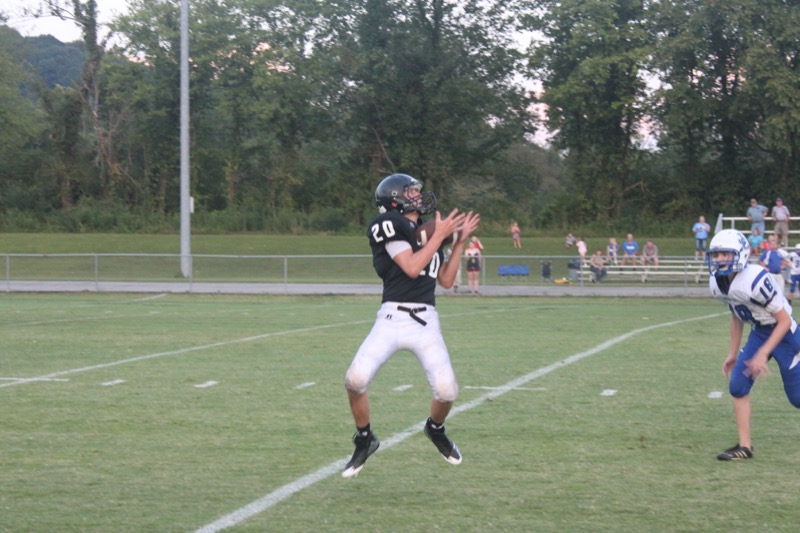 They did get on the board first behind a Burks four-yard touchdown run and led 8-0 after Boles converted the two-pointer, but the Jr. Blue Devils quickly scored three in a row to make it 20-8 with under a minute to play in the first half.