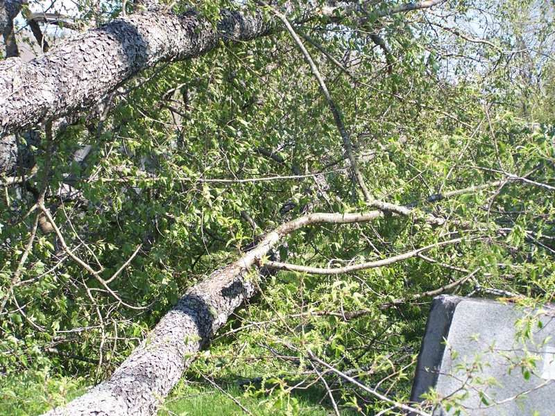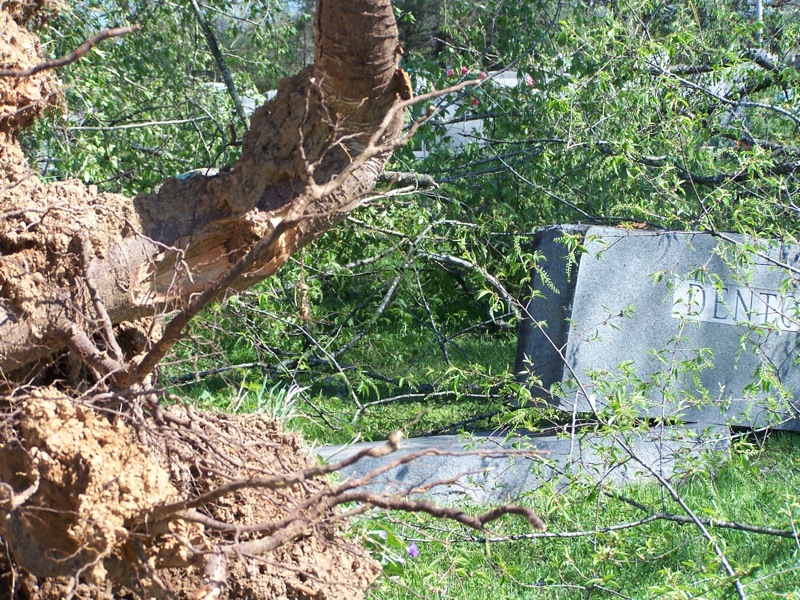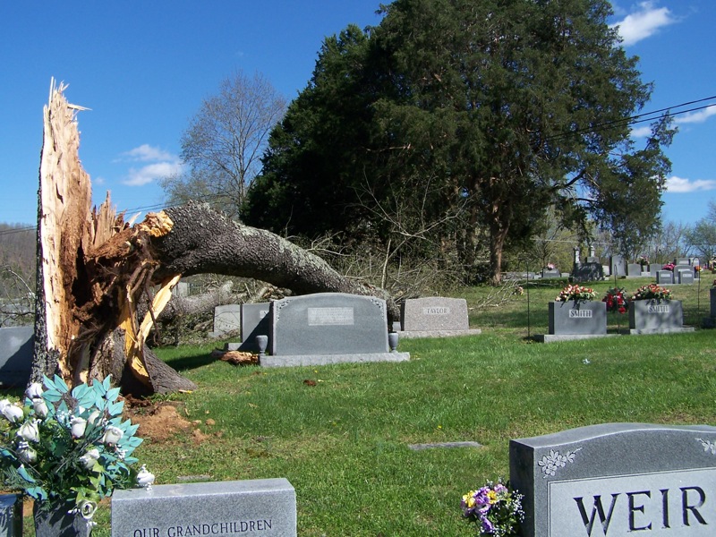 A springtime storm with sustained winds of 32 mph and gusts as high as 61 mph swept across Clay County this past Monday, April 4, 2011 bringing heavy rain and damage to trees, homes and other buildings in all areas of the county. There were reports of damage to at least two homes in Celina, an unconfirmed report of metal ripped from an auto repair business in the Moss area and numerous reports of trees broken or downed causing power outages and dislodging tombstones.
