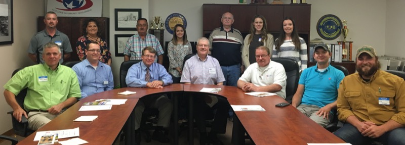 AG COMMISSIONER VISITS-Tennessee Commissioner of Agriculture Jai Templeton recently visited Clay County, and met with local officials and agriculture-related residents and a story about his stop in Celina appears on page ___. Attending the meeting were (seated, l-r) Jeff Clements, local Farm Bureau committee head; Jason Shultz, local University of Tennessee Extension Agent; Commissioner Templeton, Kevin Donaldson, local chamber of commerce director; county mayor Dale Reagan, Matt Craighead, local Natural Resources Conservation Service/Soil Conservation District; and Nick Patterson, Honest Abe Log Homes. Standing (l-r) are Celina mayor Joey Rich; Wendy Key, Randall Kimes and Haley Barnes of local UT Extension; Doug Young, local Three-Star director, April Patterson, Honest Abe Log Homes; and Jessie Campbell, state Dept. of Agriculture. (photo submitted)
