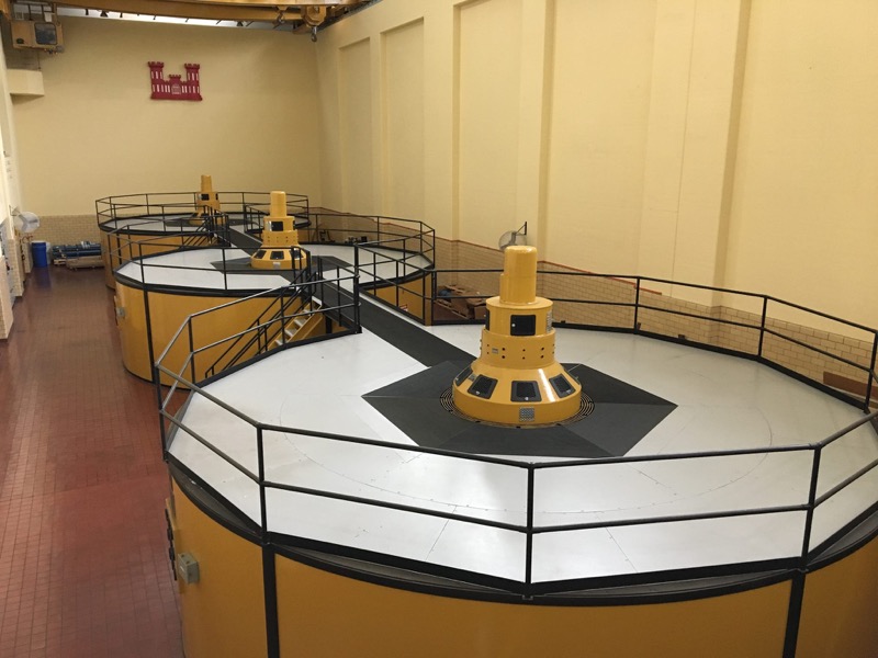 Three Francis turbines were installed in December 1948, January 1949, and November 1953. Each unit generates 18,000 kilowatts for a total of 54,000 kilowatts, enough power to electrify a community of 45,000 and provide support to the national grid.