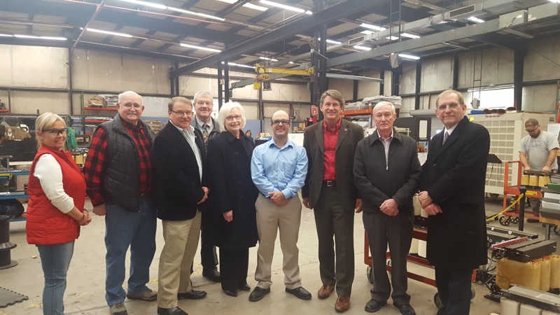 BUSINESS TRANSFORMS-State Economic and Community Development Commissioner Randy Boyd was on hand last Friday as V&F Transformer Corporation announced plans to invest $1.4 million to expand and upgrade its Celina facility, and to create approximately 50 new jobs over the next five years. On hand for a plant tour and the announcement were (l-r) Wanda Daniels, local Three-Star Program director Doug Young, Clay County Mayor Dale Reagan, chamber of commerce director Kevin Donaldson, State Sen. Mae Beavers, V & F Transformer Celina plant manager Wesley Foderaro, Commissioner Boyd, Celina Mayor Willie Kerr and former chamber of commerce director Ray Norris. State Rep. Kelly Keisling was unable to attend. (Photo courtesy Tennessee Dept. of Economic and Community Development)